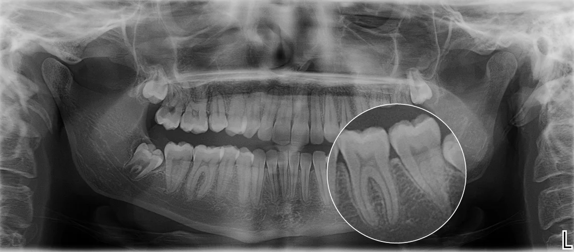 Панорамный снимок зубов (ортопантомограмма) — позволяет увидеть сразу все зубы и челюсти на одном изображении.